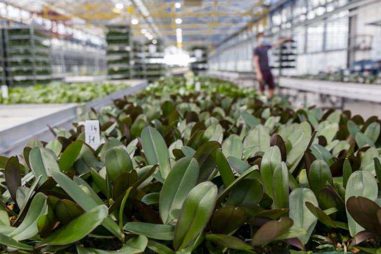 A Floricultura nagy név a nemzetközi orchideapiacon. A cég a Phalaenopsis, Cymbidium, Cambria és Miltonia fajták fiatal növényeit termeli. "Ezek képezik a kiindulási alapanyagot az orchideatermesztők számára világszerte" - magyarázza Dennis van der Wel, aki végső soron az összes termesztési tevékenységért felelős. "A szaporítási fázisban semmi sem romolhat el; vevőink zéró tolerancia politikát folytatnak. Hogy lehetővé tegyük számukra, hogy tiszta növényekkel kezdhessenek, maximálisan kihasználjuk a biológiai növényvédelmet, nagy hangsúlyt fektetve a megelőzésre. Minél több kártevőt tudunk távol tartani a fiatal növényektől, annál jobb".